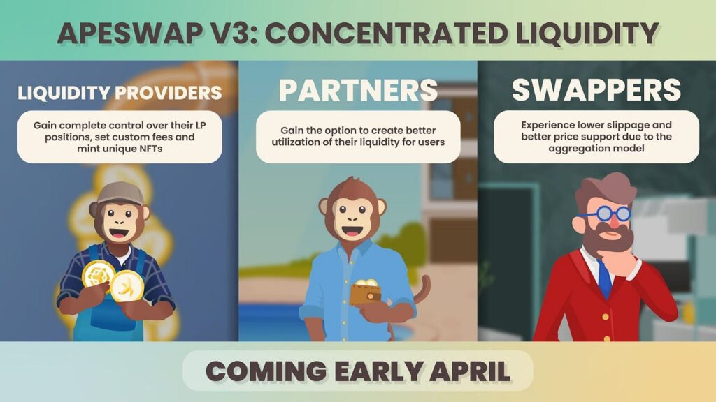 ApeSwap has officially announced the launch of ApeSwap V3, which utilizes the latest industry standard approach to liquidity provision known as concentrated liquidity.