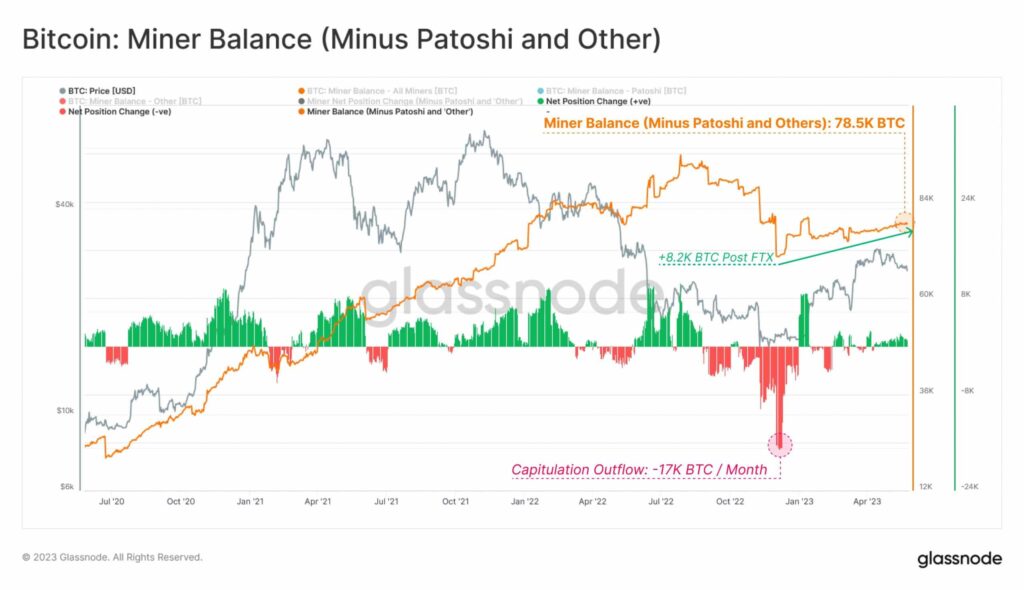 The indication of miners’ confidence in Bitcoin was demonstrated by the expansion of their balance sheet through the acquisition of an additional 8.2K BTC. As a result, their total holdings have grown to reach 78.5K BTC according to Glassnode’s data.