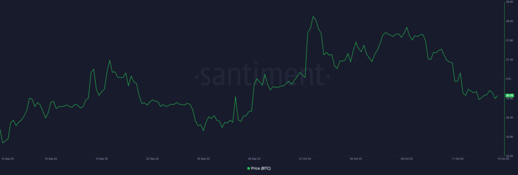 At the time of writing, Bitcoin was trading at $26,700, showing limited upward momentum despite the increasing speculation surrounding ETFs.