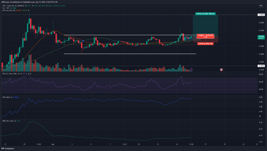 Over the past ten days, XRP bulls valiantly defended the $0.5 mark, as it was a psychological round number as the short-term mid-range support, and most importantly, a higher timeframe level of significance as well. The rising BB width indicator showed an expansion phase could follow, reinforcing the idea of a bullish breakout.