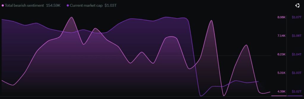 As the news caught fire, the global crypto industry’s market capitalization registered a decline of 4% in the last 24 hours, and as per LunarCrush, bearish sentiments shot up unexpectedly.