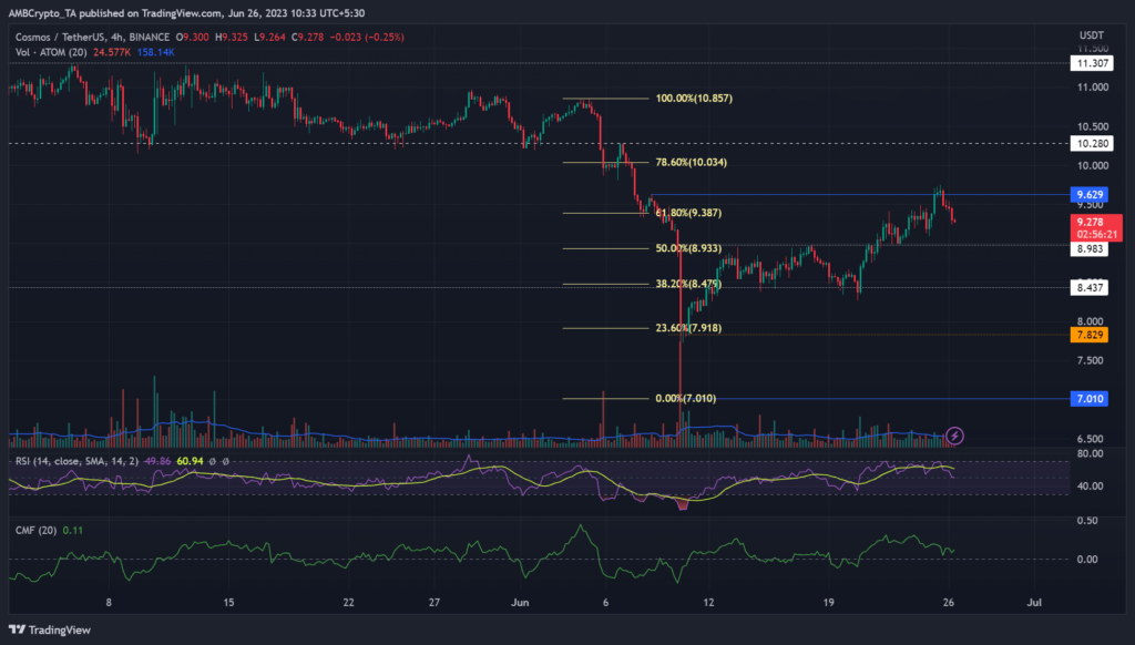 According to Coinglass, ATOM’s open interest rates have been wavering since the second half of June. This could limit a strong bounce above $9.5 or $10, as it denoted wavering demand in the futures market.