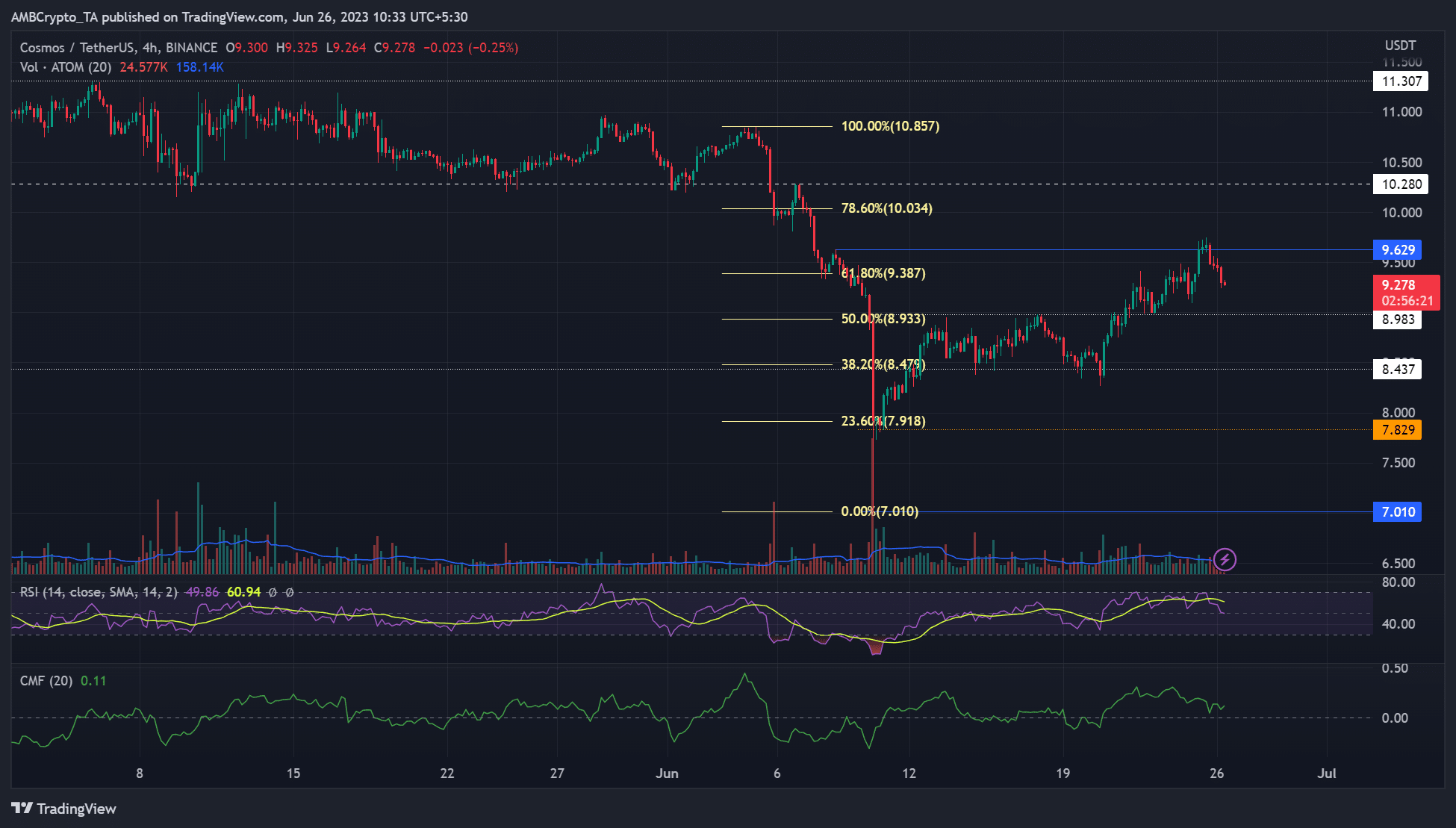 A rebound from $8.93 or a pullback retest on $9.63 could offer new buying opportunities, provided BTC remains bullish.