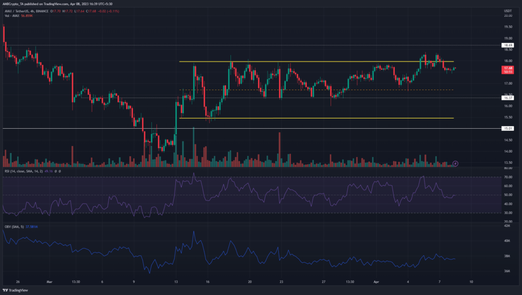 Avalanche [AVAX] appeared to break out past the $18 resistance on the price charts on 5 April, but the sellers were able to stall for a time. The same maneuver was repeated on 6 April, with the same result.