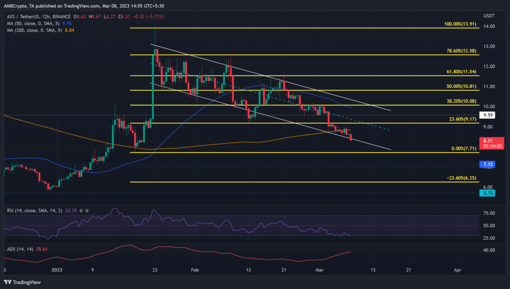 Axie Infinity’s [AXS] price action has weakened over the past few weeks. Since January 23, the gaming token has depreciated by 40%, with the crypto trading below $10. At the time of writing, AXS’s value was $8.3 and it could retest key support levels if macroeconomic headwinds persist.