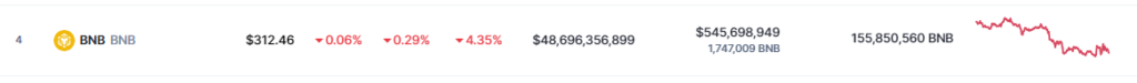 Binance Coin’s price on CoinMarketCap stands at $312.46, with a slight dip of 0.29% in the past 24 hours. Unfortunately, this trend has persisted over the last seven days, with a decline of 4.35%, leaving investors anxious about the future direction of Binance Coin’s value.