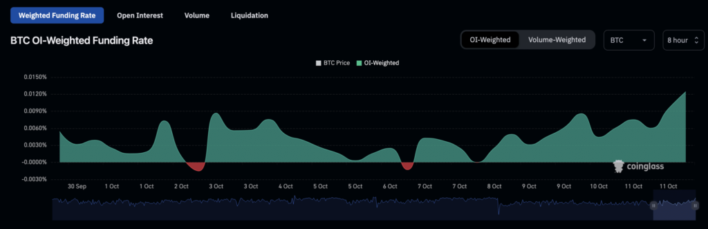 At press time, the coin’s funding rate was 0.0124%. According to data tracked by Coinglass, it has increased by over 115% since 7 October.