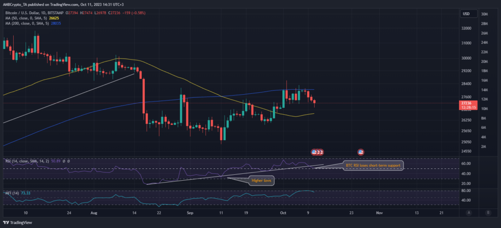 BTC was already showing signs of bullish weakness at the time of writing, as the RSI gave up its previously observed short-term support.