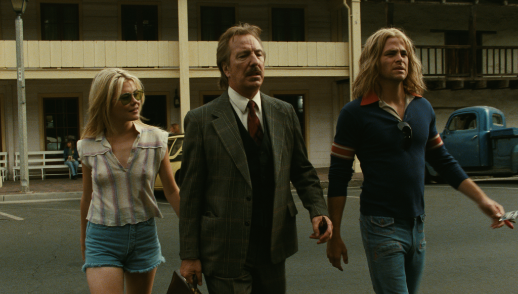 Rachael Taylor, Alan Rickman, and Chris Pine in “Bottle Shock.” Courtesy: Unclaimed Freight Productions
