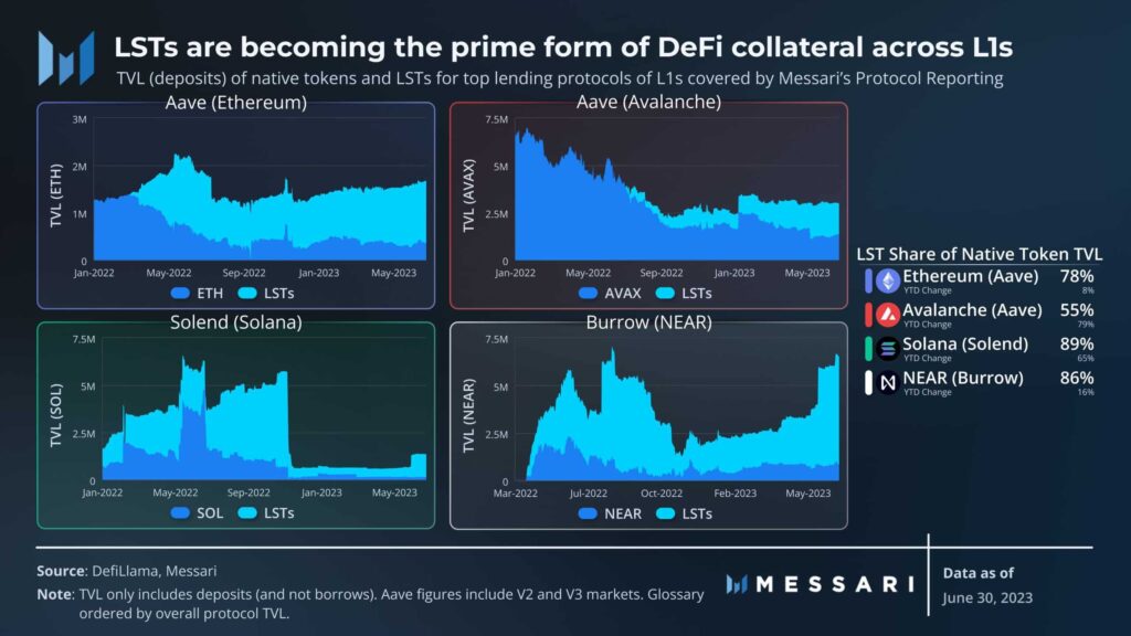 According to a researcher from on-chain analytics firm Messari, LSTs have gradually begun to replace native tokens as the primary decentralized finance (DeFi) collateral on various networks.
