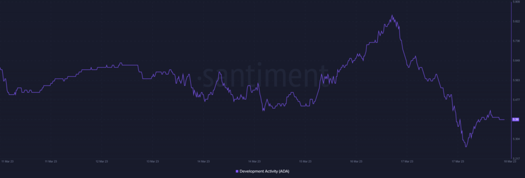 Cardano’s [ADA] development activity took a back seat for the majority of last week as it went sideways. However, the graph managed to register a spike on 16 March, after which it once again declined.