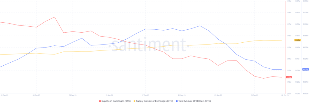 Notably, BTC’s Supply on Exchanges has dropped over the last month. Its supply outside of exchanges increased at the same time, proving the fact that investors were buying the coins.