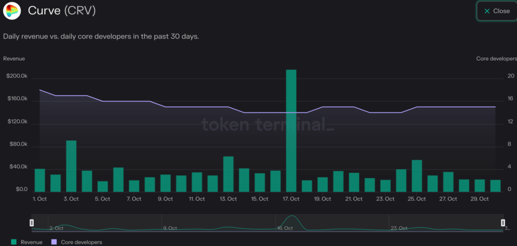 - Curve protocol witnessed a surge in revenue; however, development activity fell.