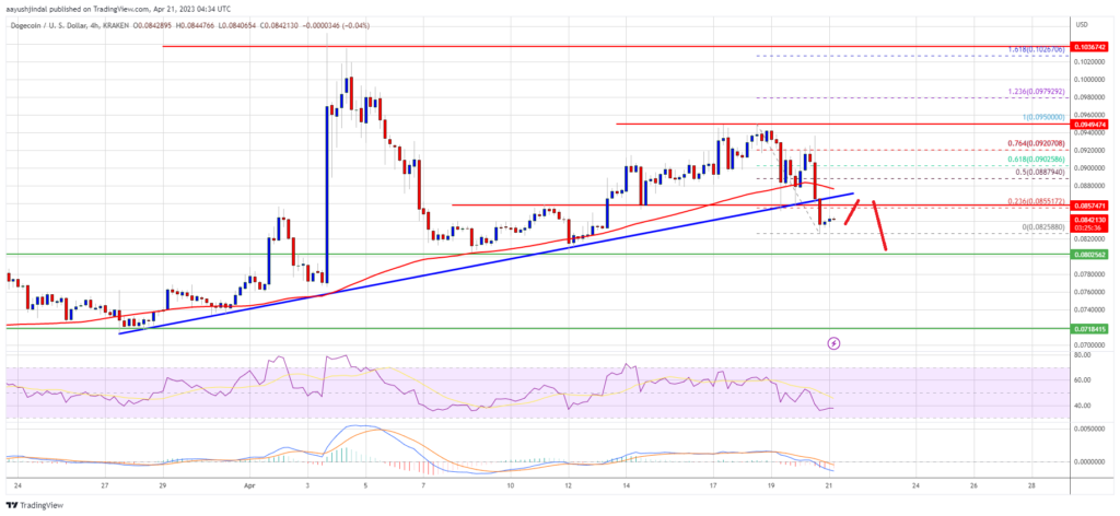Dogecoin started a fresh decline from $0.0950 against the US Dollar. DOGE is declining but the $0.080 support might protect more downsides.