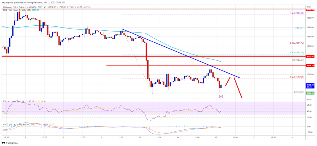 If Ethereum fails to clear the $1,755 resistance, it could continue to move down. Initial support on the downside is near the $1,720 level.