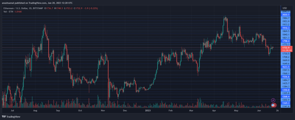 At the time of writing, Ethereum (ETH) was trading at $1,730, showing signs of recovery over the past few days. The altcoin remained in proximity to a significant support line at $1,717. On the upside, there was an overhead resistance at $1,770. If buying strength strengthens, Ethereum may aim for the $1,740 level.