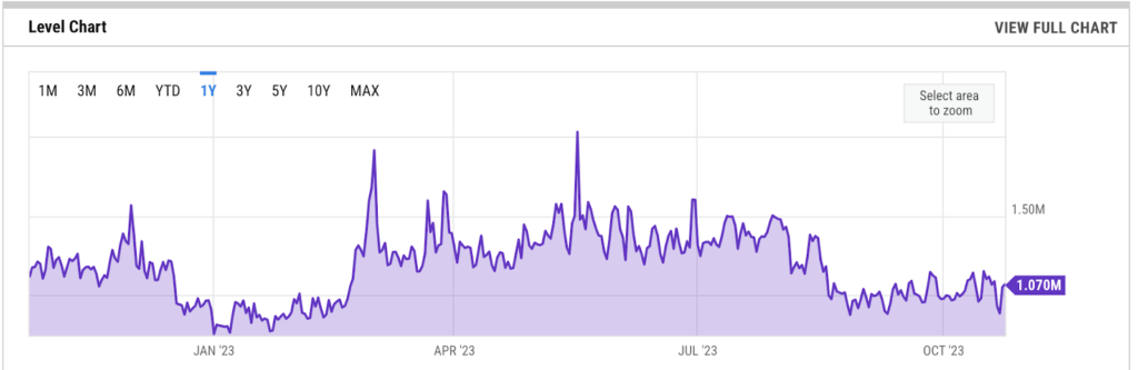 The screenshot below shows that the BNB chain had over a million daily active addresses on Oct. 24.