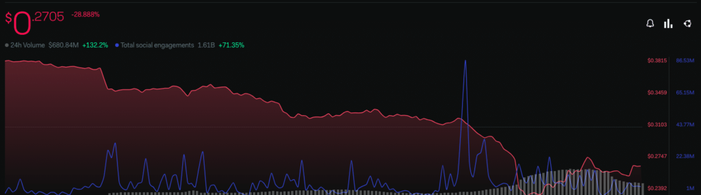 Another aspect of the Cardano ecosystem that contributed to this was the price of its native token. Over the last seven days, ADA’s value depreciated by 28.83%. However, in the last 24 hours, the price gained by 8.33% while exchanging hands at $0.27 at press time.