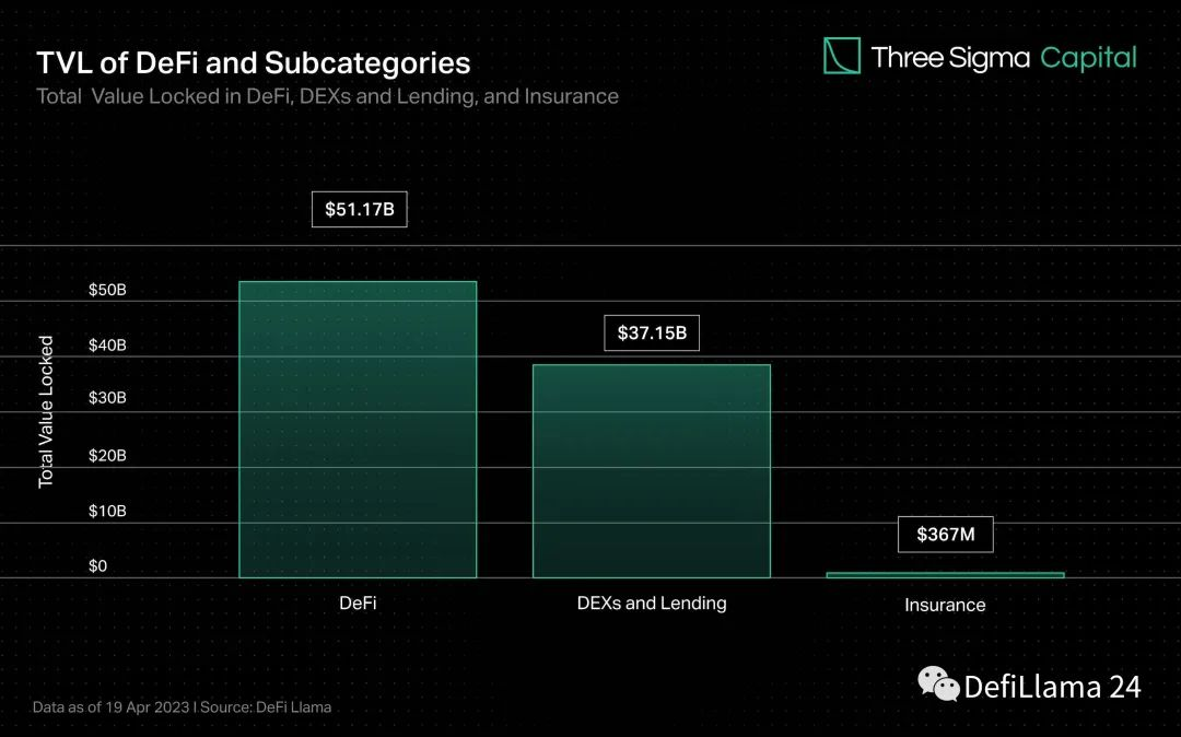Industry pioneer Nexus Mutual has dominated the insurance market since its launch, accounting for over 78% of TVL but only 0.15% of DeFiâs total TVL. The rest of the insurance market is fragmented, with the three policies behind Nexus accounting for about 14% of TVL.
