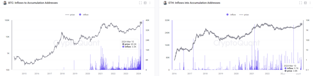 Bitcoin witnessed a faster rate of accumulation than Ethereum