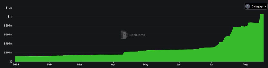 Per the data aggregator’s dashboard, RWA’s TVL has more than tripled within the last few months to over $1 billion from the $270.29 million recorded on June 1.