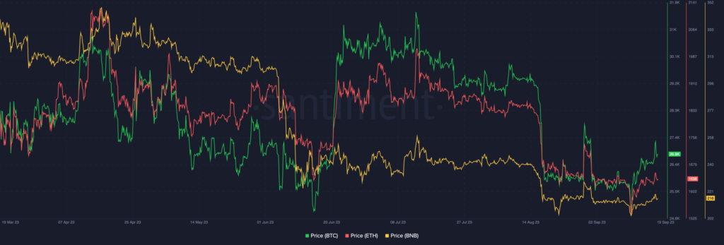 Notably, Bitcoin’s price, at the time of writing, stands at $26,600, having witnessed an upward trajectory in recent days.
