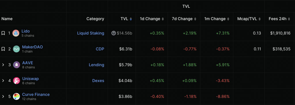 - Within six months, Lido’s TVL has doubled that of MakerDao.