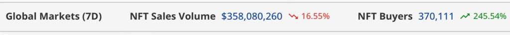 Seven-day sales according to cryptoslam.io metrics.