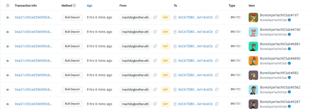 According to Etherscan, numerous NFT belonging to BAYC and MAYC have been moved to crypto exchange Binance by Machi Big Brother. With a combined value of nearly 2,900 ETH, Machi Big Brother’s action further ignited discussions around the ongoing battle between regulatory authorities and the crypto industry.