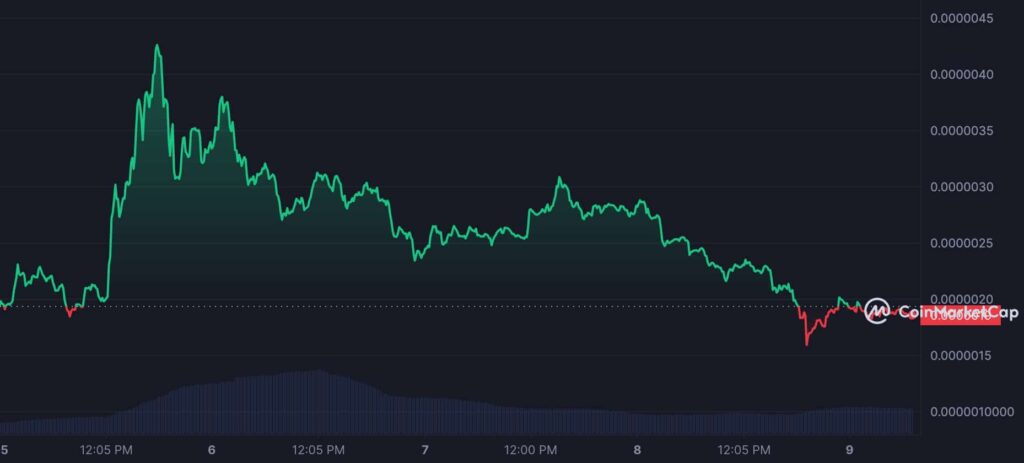 Five days after it clinched an all-time high (ATH) of $0.000004354, well-traded meme coin Pepe [PEPE] has shed over 50% of its value, data from CoinMarketCap revealed.