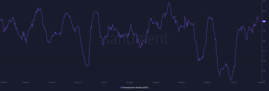 A look at Polkadot’s daily price trend chart revealed a fall in its value at the end of Q3. During this period, DOT experienced a significant loss in value, falling by more than 22%.
