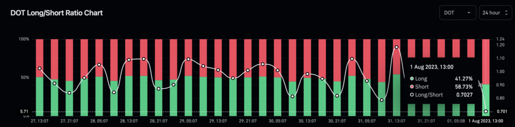 Despite the significant performance of the last seven days on the social front, DOT didn’t seem in the best of health. As per data from coinglass, DOT’s long/short ratio favored the stance of short holders.