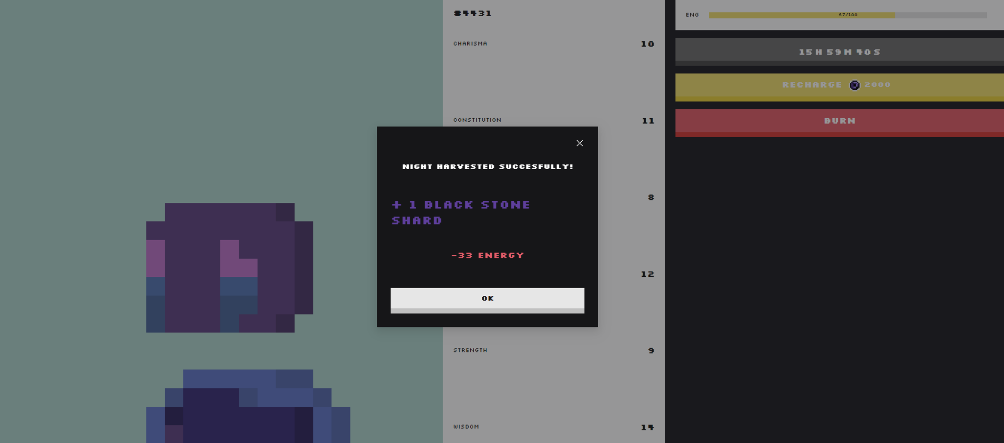 Happy Shadow Puppets stats and characteristics are based on the Puppet used in their creation. For 500 FDE, Puppets may use their energy to “harvest,” giving the owner a chance to receive items such as the Stone Shards used to empower Souls. Users can claim rewards earned through harvesting through the profile page.
