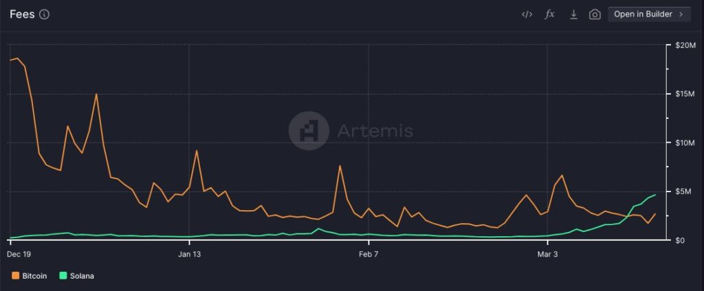 - Solana validator fees outpaced fees generated on the Bitcoin network.