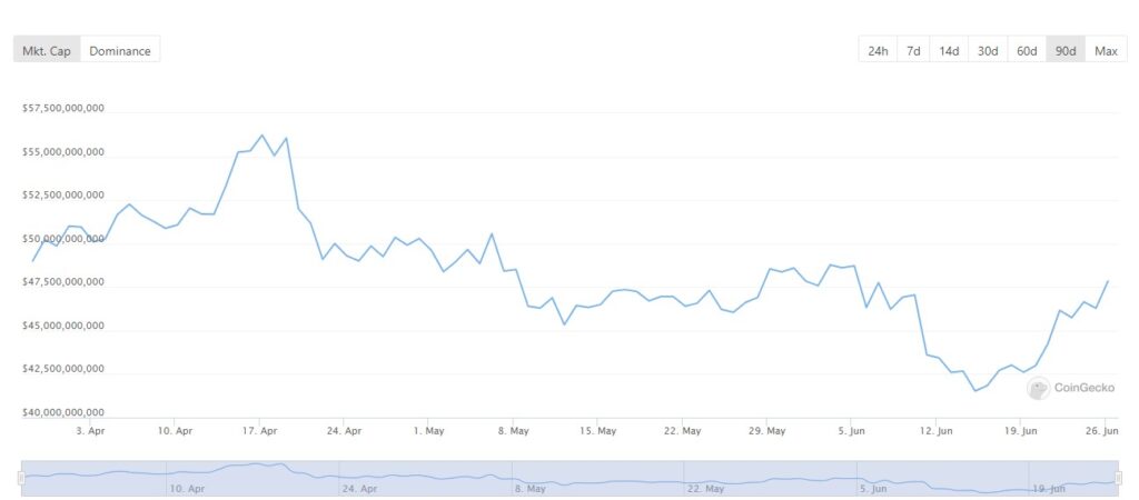 According to CoinmarketCap, the current market cap of DeF is $44.27B with a trading volume of $3B.