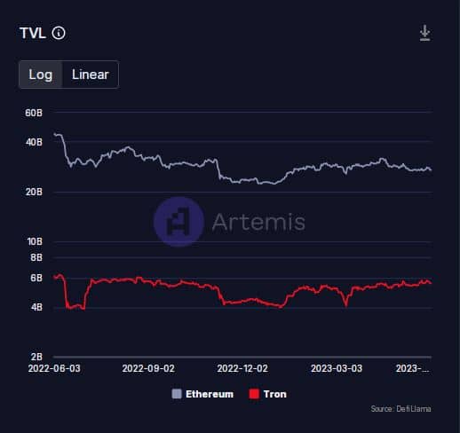 Recall that, Ethereum is the largest network for DeFi and dApps, with a total value locked (TVL) of a staggering $27.04 billion at press time, according to data from Artemis. On the other hand, Tron, which comes second-best in the list, held assets worth $5.55 billion.