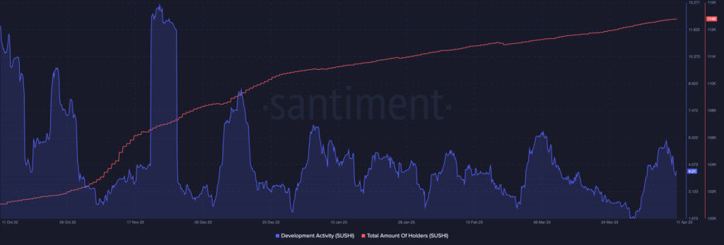 At the time of writing, SushiSwap failed to hold up its fort. As per data from Santiment, development activity on the SushiSwap network didn’t seem at its best.
