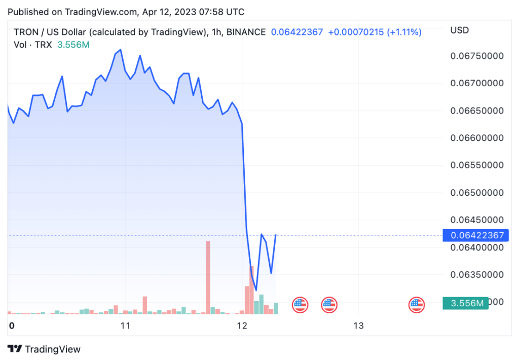 The TRX price responded to this news by recording a sharp decline from $0.0666 to as low as $0.0632 within a few hours.