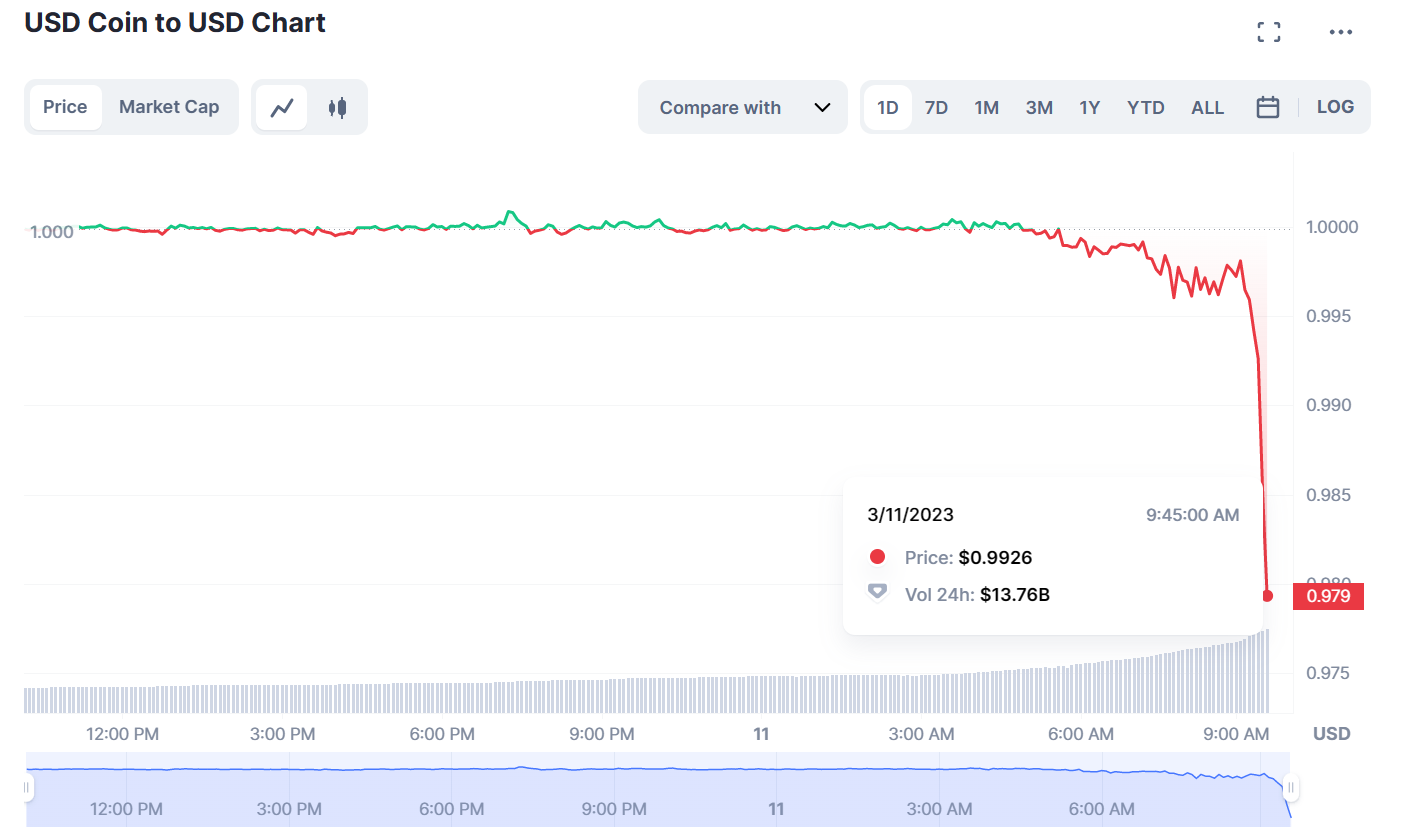 Almost immediately after USD Coin (USDC) issuer Circle revealed it could not withdraw $3.3 billion of its $40 billion reserves from Silicon Valley Bank (SVB), the resultant sell-off caused the price of the stablecoin to fall below its $1 peg.