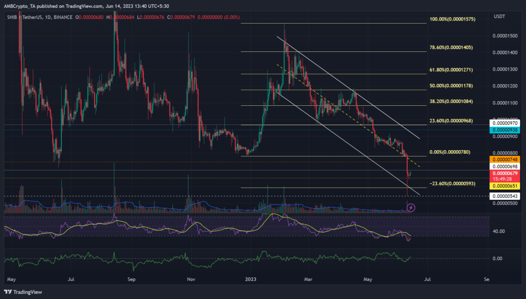 Over the past weekend (10/11 June), BTC retested the $25k zone, exposing altcoins and meme-coins to another round of price dumps. SHIB dropped to $0.00000543, dropping below 2021 lows of $0.00000510.
