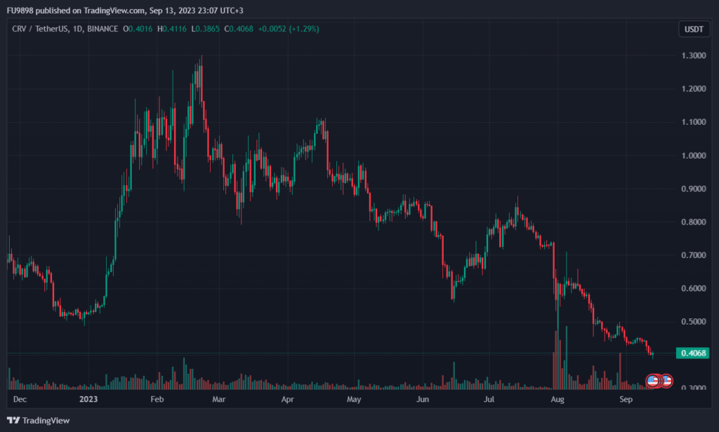 CRV price dropped below the OTC price level of $0.4 on September 13 and is currently trading at $0.4060. So in the current situation, it has made a loss from this OTC trade. Egorov sold a large CRV via OTC for $0.40 when the CRV price was around $0.58.