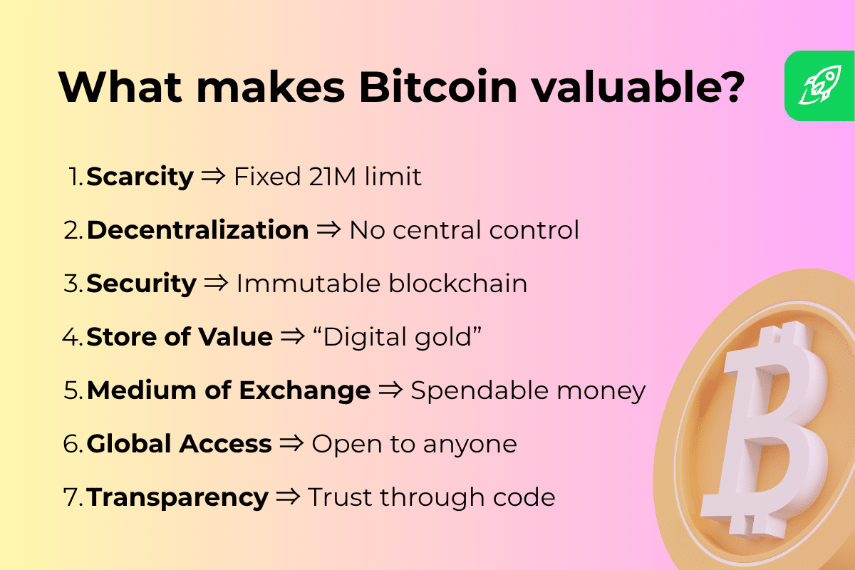 You can’t touch it. You can’t see it. It’s not backed by any governments, gold standards, or anything physical. But then, why is Bitcoin valuable? Good question! If it’s just a string of code running on a blockchain network, why do people pay thousands of dollars for a single coin? And here’s the crazy part: it isn’t just expensive, it works. Bitcoin doesn’t rely on central banks or middlemen like fiat currencies. It’s a decentralized digital currency with a limited supply, coded and built using cryptography and blockchain technology. In this guide, you’ll learn what makes it worth something—and why it might just be the most important digital asset ever.