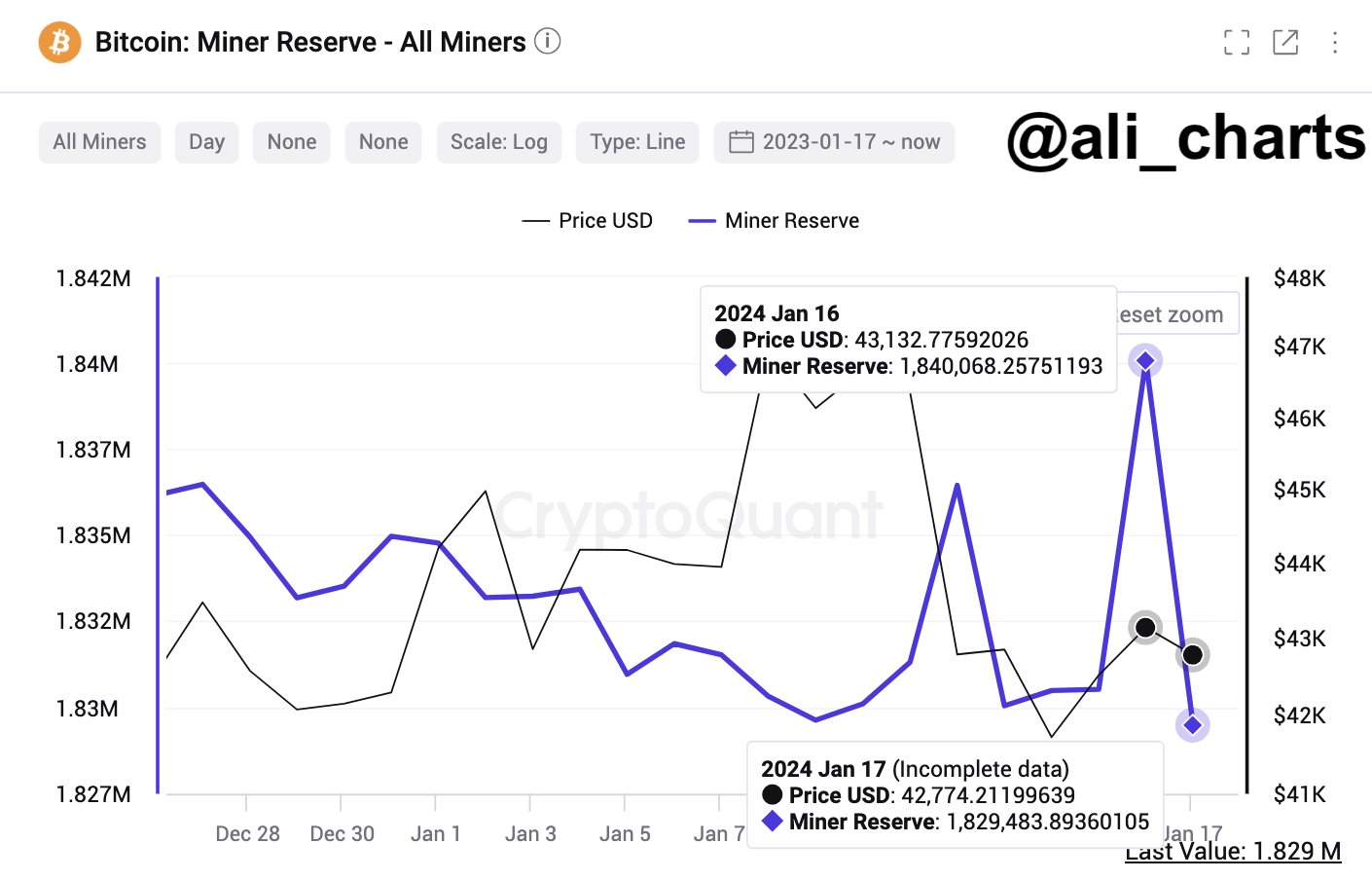 Ali Martinez has spotlighted the intensified selling activity by Bitcoin miners as another factor influencing the current price stagnation. Recent on-chain data indicates that miners have significantly increased their Bitcoin sales.