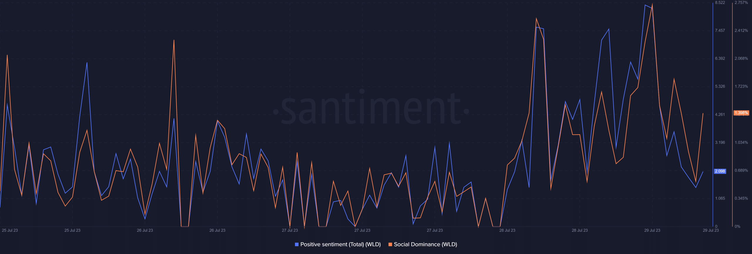 The coin also managed to remain one of the most popular cryptocurrencies in recent days, as WLD was trending #1 on CoinMarketCap. Moreover, its social dominance spiked in the last few days.