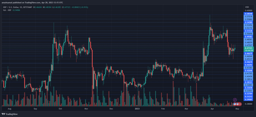 The altcoin was trading for $0.47 at the time of writing. It is trading underneath its overhead resistance of $0.48. The aforementioned resistance mark is crucial as it has served as a price ceiling previously.